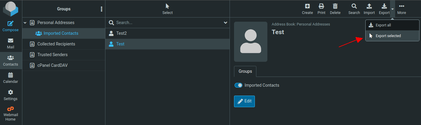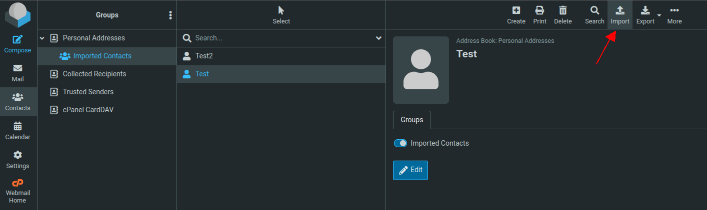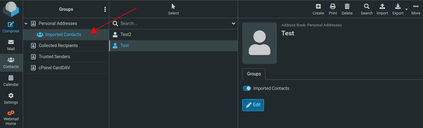 4. Dentro de la sección "Personal Adresses", damos clic en "Imported Contacts".