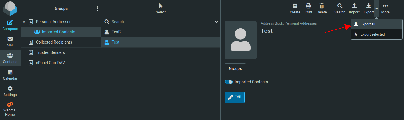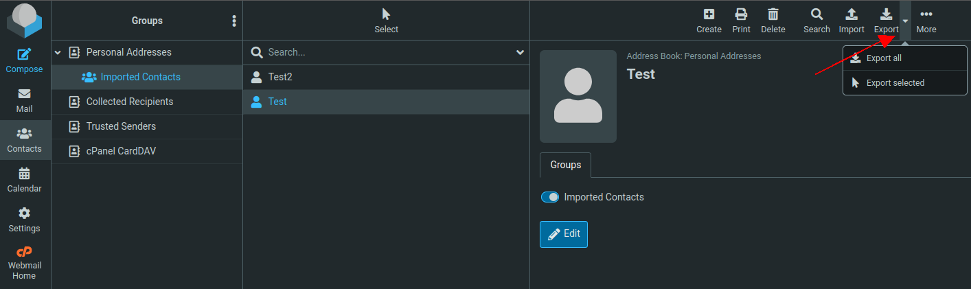 4. Dentro de la sección "Personal Adresses", damos clic en "Imported Contacts".
