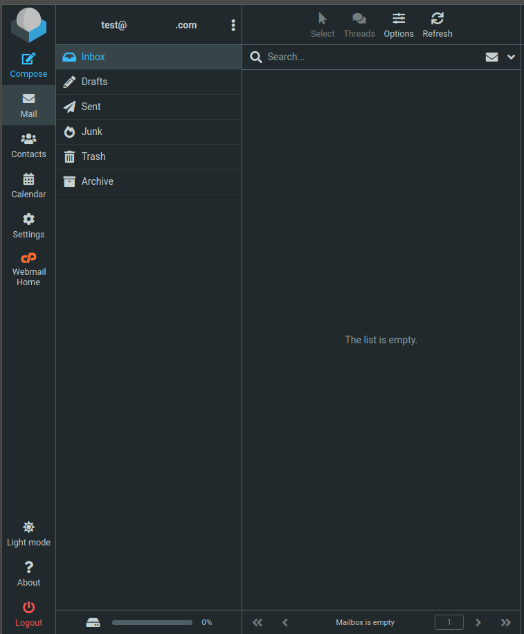 3. Después de haber accedido podrá ver el panel general de su cuenta de correo electrónico y de ese modo gestionar sus servicios de email a través de un método online y desde cualquier ordenador.