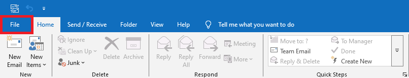 1. Nos vamos a la parte superior de Outlook y damos clic en "File"