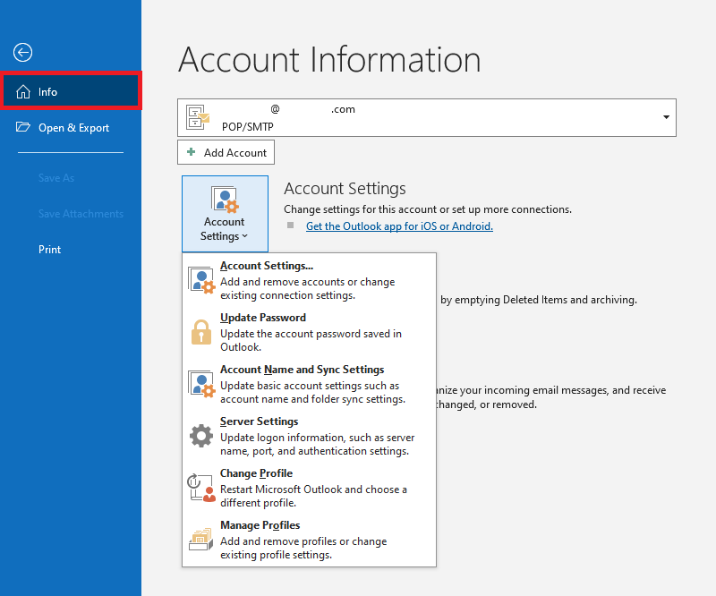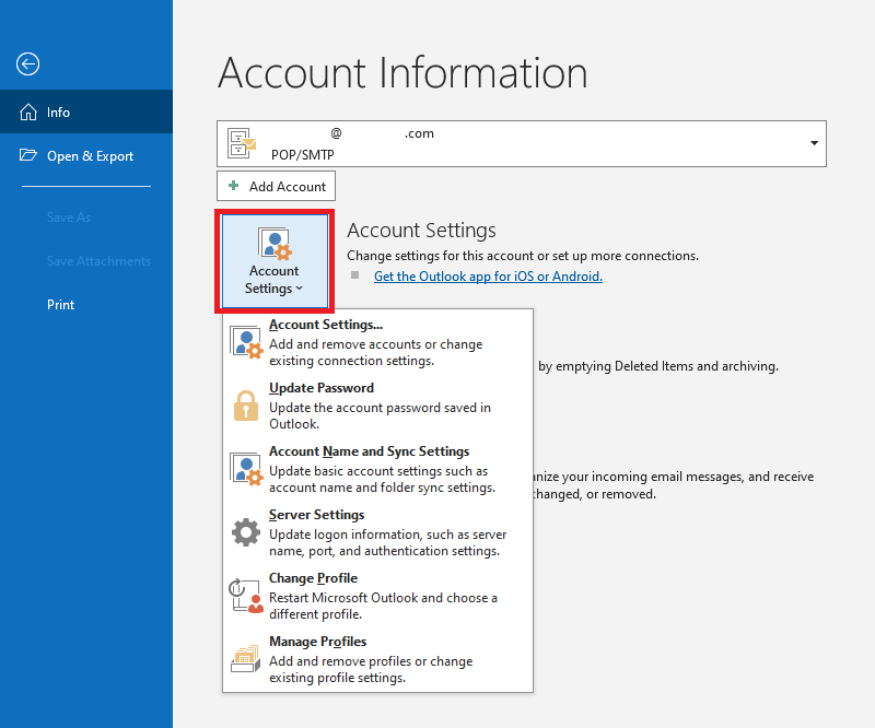 En el caso de las cuentas POP podemos dirigirnos a las opciones de configuración de nuestra cuenta de correo electrónico.